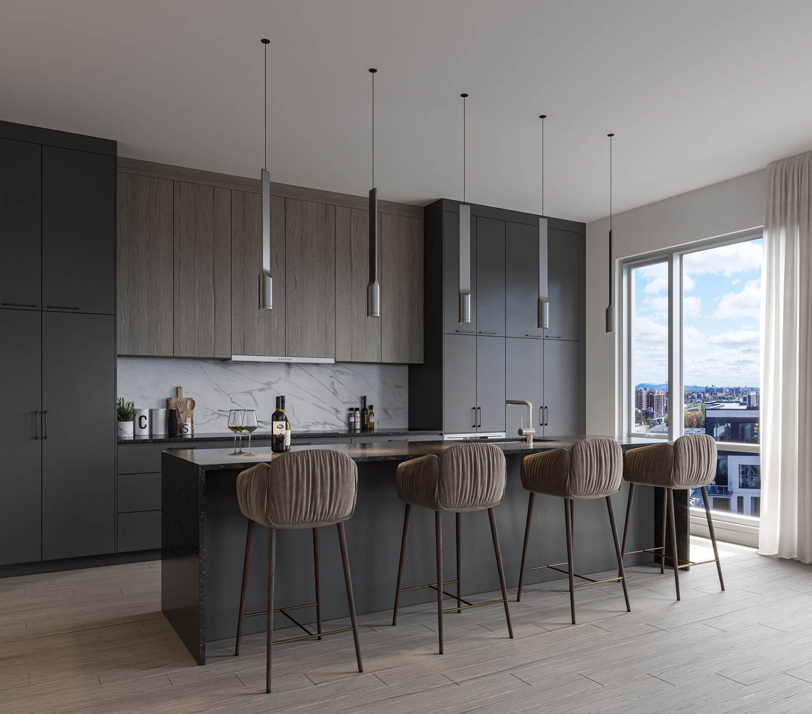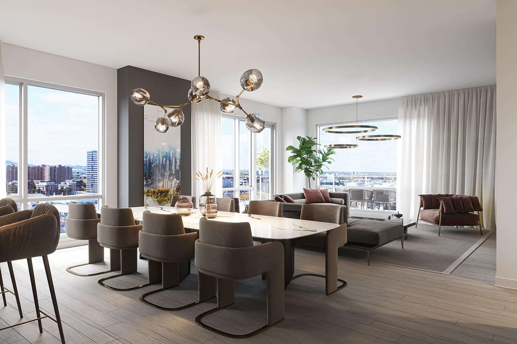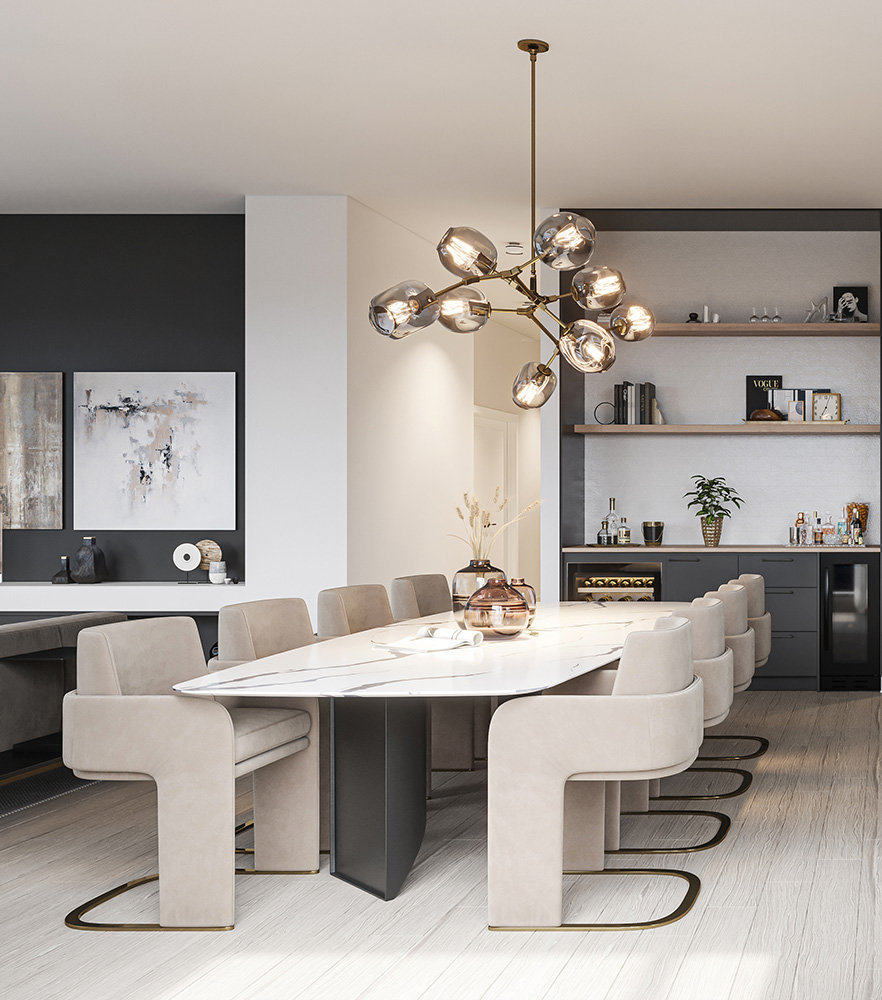 Les unités du dernier étage du Marquise bénéficient d’éléments distinctifs. Les plafonds y sont plus hauts et incluent un ensemble d’éclairage bonifié, ce qui offre un plus grand volume de vie et une très grande luminosité.