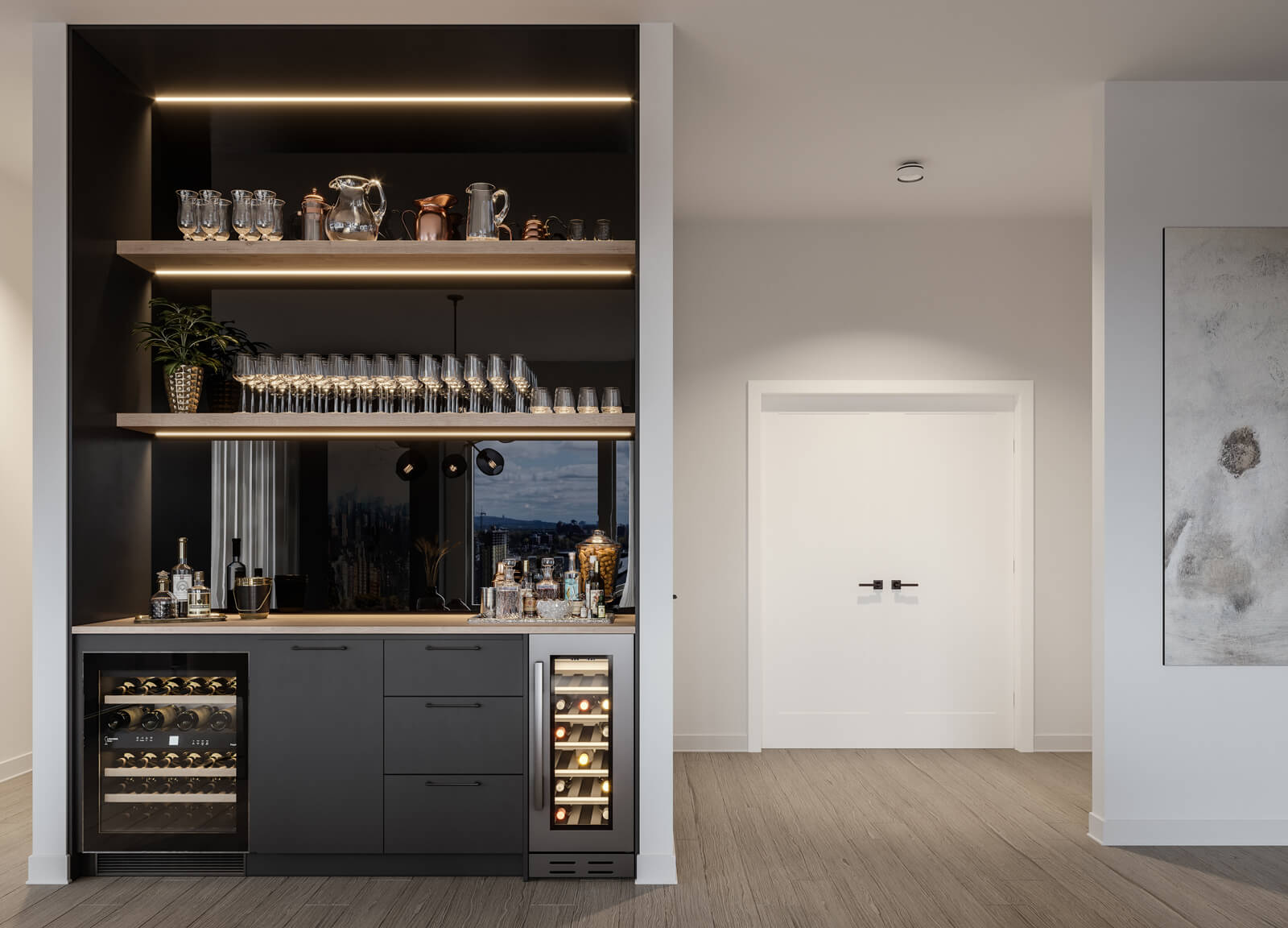 Les suites des maîtres sont dignes des plus belles des chambres d’hôtel, avec de luxueux éléments dans les salles de bain tels que des douches à l’italienne et des planchers chauffants, ainsi que des walk-ins aménagés avec du mobilier intégré sur mesure.