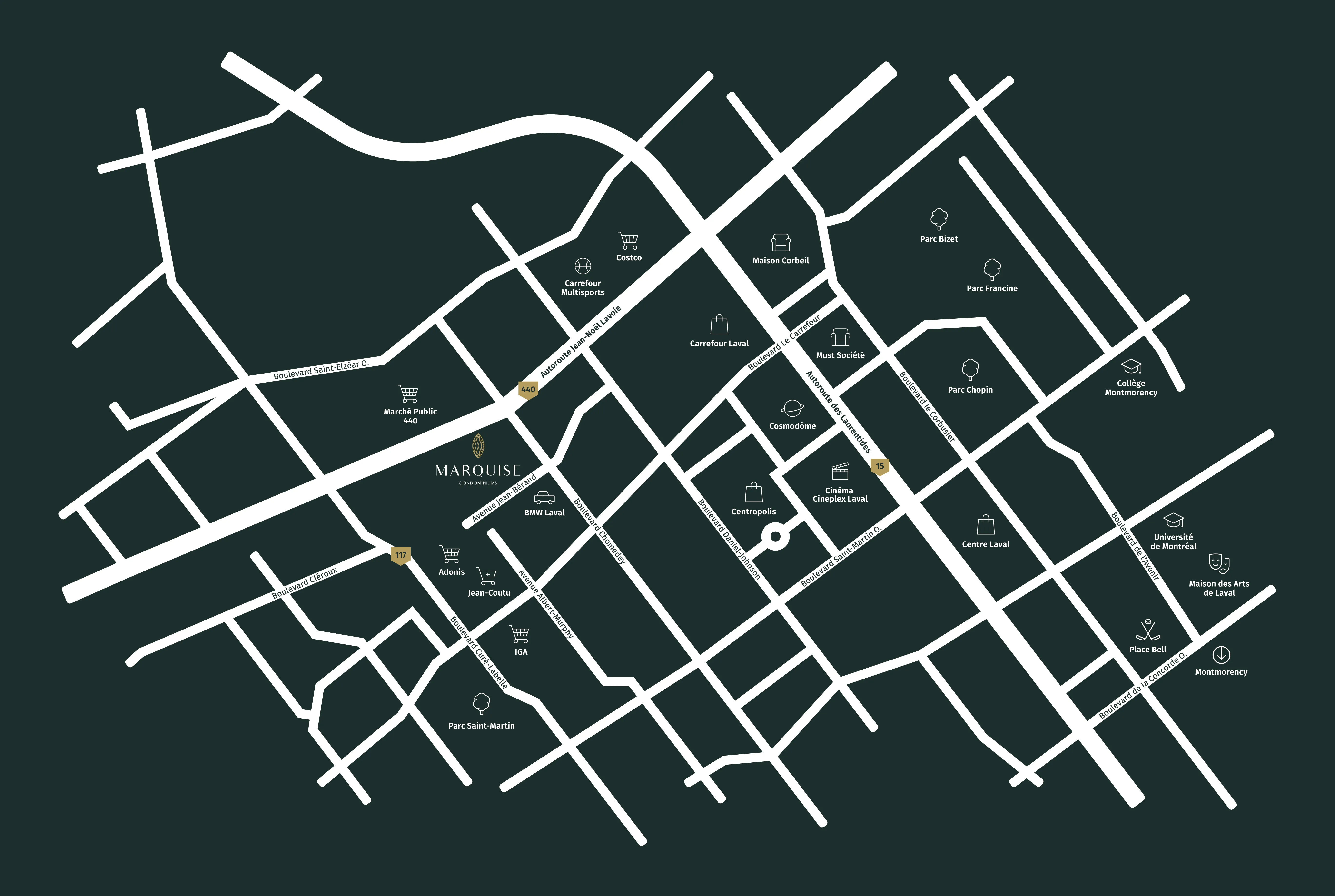 Marquise est votre porte d’entrée s’ouvrant sur tous les attraits du centre-ville de Laval. À quelques jets de pierre se trouvent tous les biens et services imaginables en abondance.